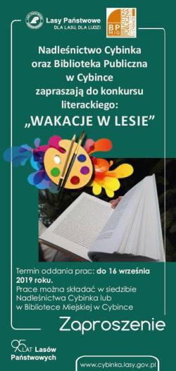 Do Nadleśnictwa wpłynęło 20 prac, które zostaną zaprezentowane w dniu 8.11.2019 r. na Spotkaniu Literackim w Bibliotece Miejskiej w Cybince o godz. 16:00. W tym dniu zostaną również rozdane nagrody dla wszystkich uczestników (laureatów, wyróżnionych oraz za prace które brały udział w konkursie).