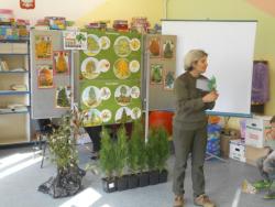 Dzieci razem z nauczycielami wysłuchały ciekawego opowiadania o drzewach a na zakończenie wszyscy wyszliśmy na zewnątrz szkoły i posadziliśmy symboliczne drzewka.